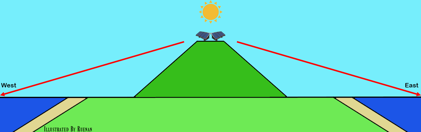 If a pair of panels are placed so each could see either the East or West horizons, the following could reasonably be expected, within a reasonable margin or error.