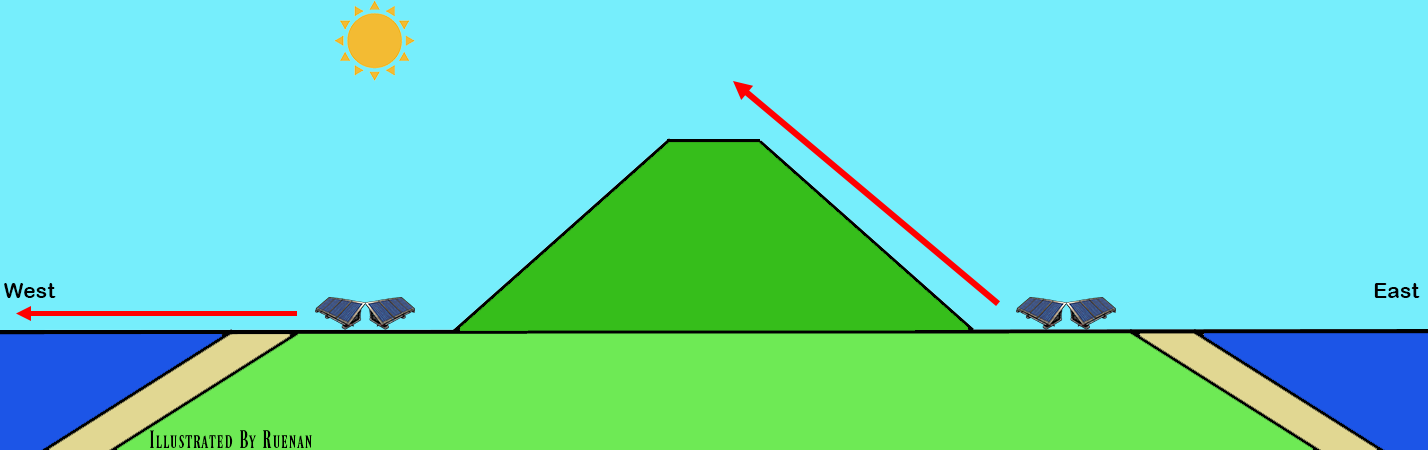 behind the hills and mountains. The panels on the West side could catch