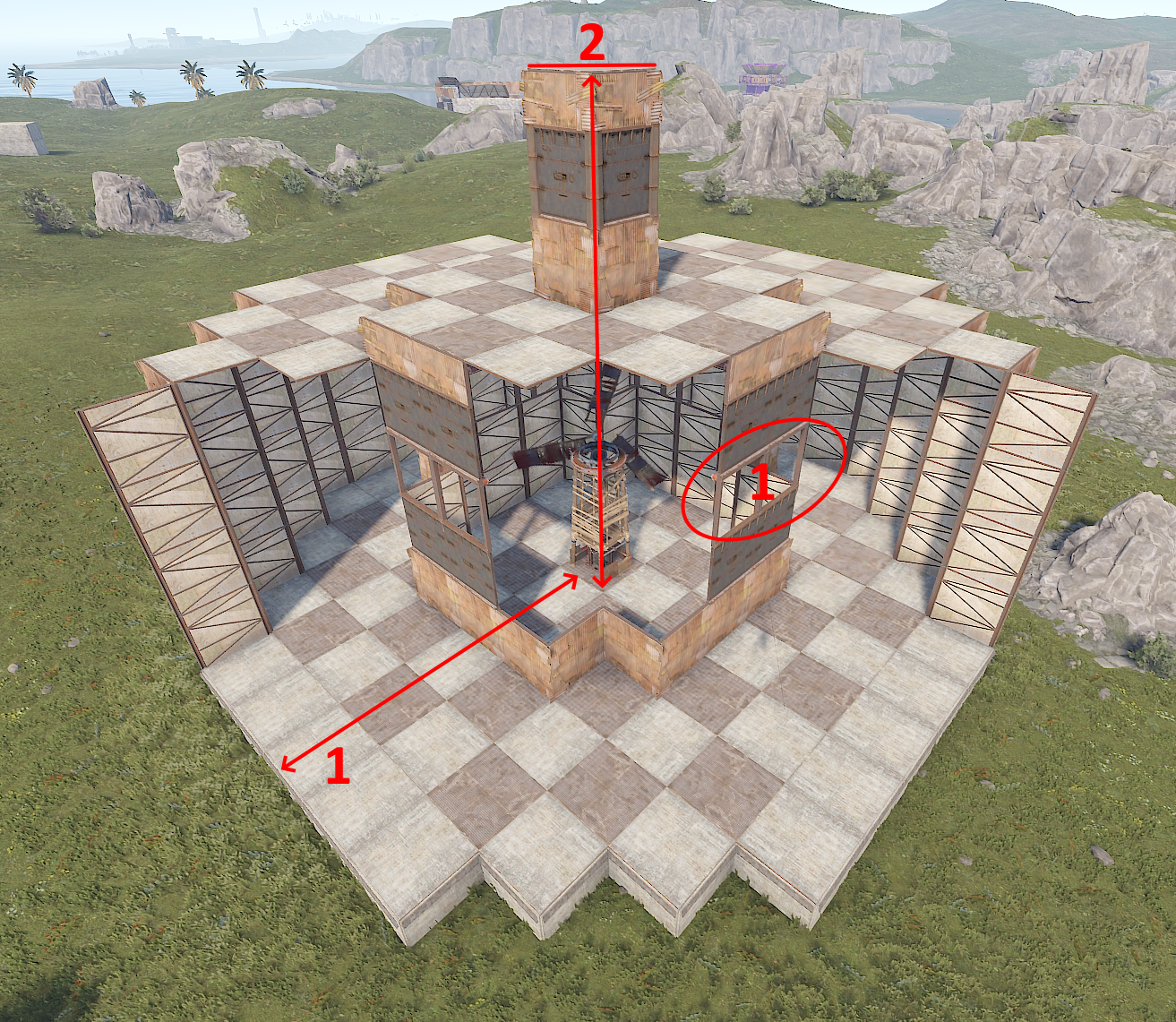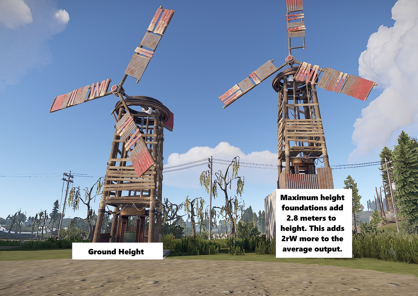 When measuring height, people will regularly refer to how tall or high their Wind Turbines are by counting the number of floors down to the foundations. This is a very easy way to relay information to everyone that plays Rust but if it was necessary to be more accurate, the height of the foundation could be taken into account.