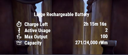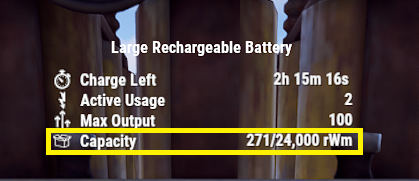 Therefore a capacity of 271rWm when viewed on an IO connection is equal to 121,950Np. We can also see that if the Large Battery did not have an output limit of 100, it would be able to output 16,260rW of power for 1 second.