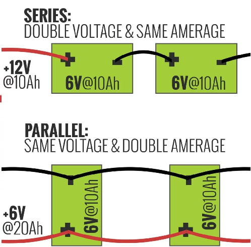 If we wire two 6V@10Ah batteries in series, we will now have twice