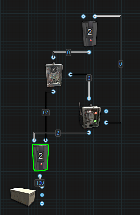 Seeing the power level on the counter confirming power is coming into the bottom, we will now adjust the Electrical Branch to send more power to Switch On.